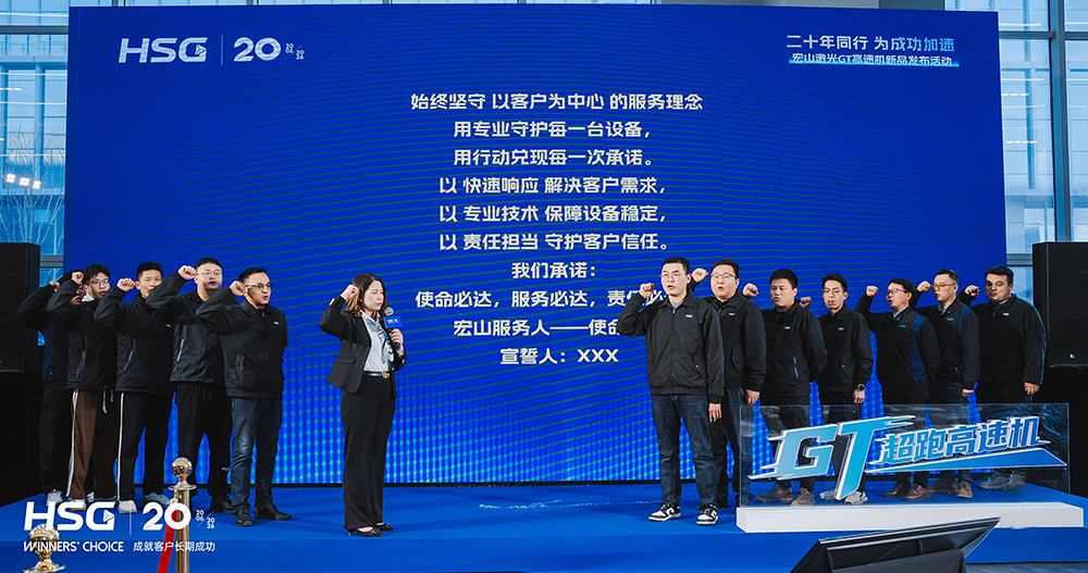 宏山激光中國大區(qū)服務負責人張會連表示:“帶著責任前行,以專業(yè)服務和技術、高效響應與暖心服務踐行‘以客戶為中心’的理念,用行動捍衛(wèi)品牌,用結果兌現承諾。”隨后,張會連帶領帶領服務團隊代表登臺宣誓。鏗鏘有力的誓言回蕩在會場,也展現出宏山服務團隊以行動守護客戶生產、持續(xù)提升服務品質的堅定決心。