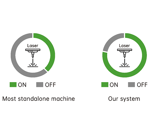 自動化生產大幅減少處理物料的等待時間,同時,我們的系統可以通過使用同步流程大幅縮短上下料時間。使您的設備可以得到充分利用,最大限度地提高每小時的產量,并在另一臺機器、額外的空間和操作人員上節省資金。